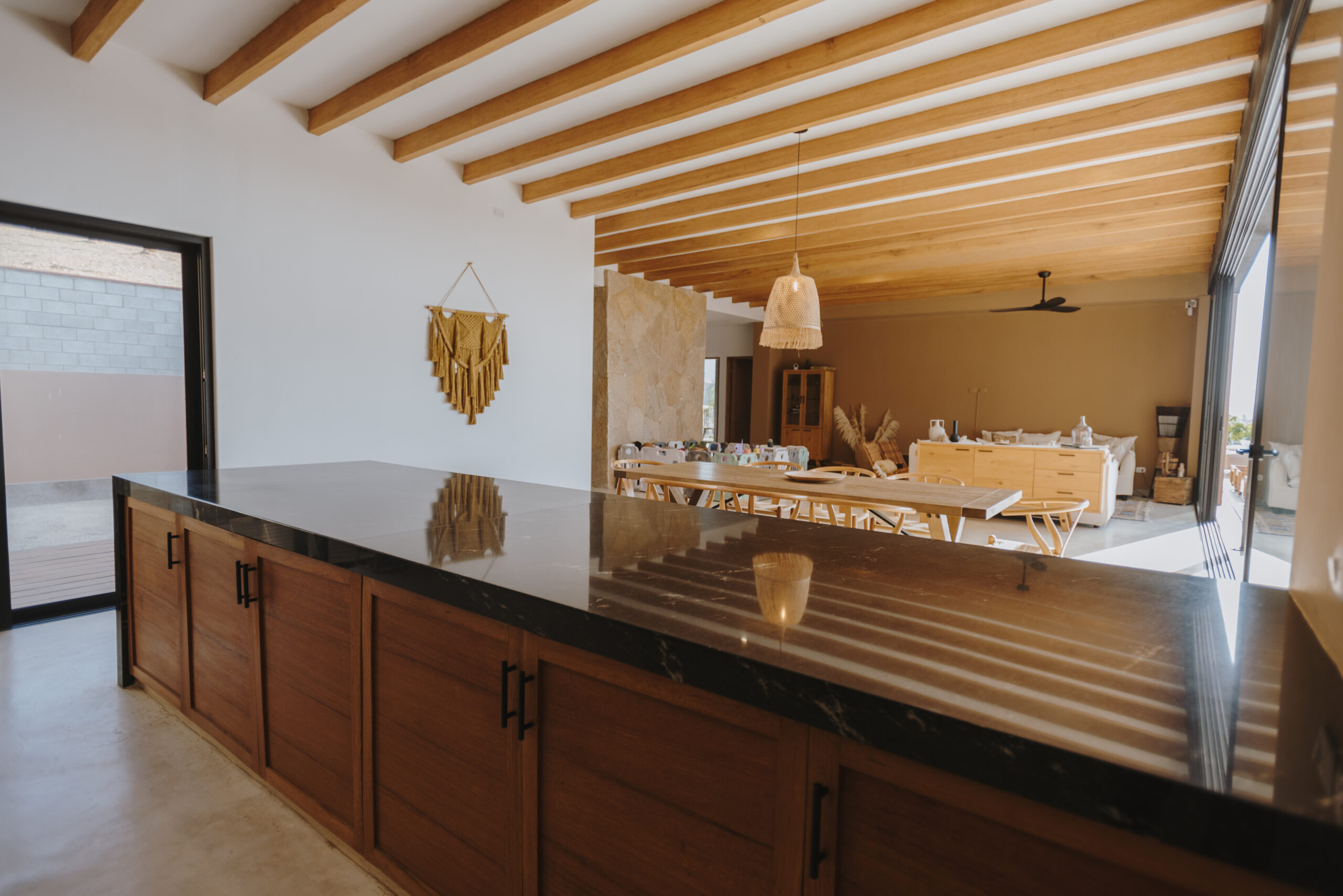 Su diseño abierto permite integrarse con las áreas sociales, convirtiéndola en parte activa de cada encuentro.